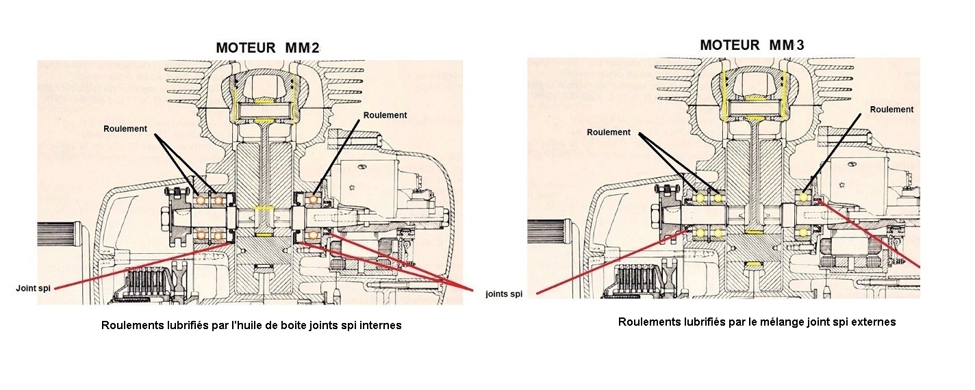 Les moteur MZ deux temps sont constitués de deux parties distinctes isolée l'une de l'autre et lubrifiées de manière différente.