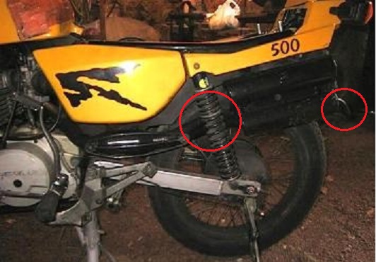 La fixation arrière définitive est fabriquée à partir d'une tige d 'ETZ 250 raccourcie et cintrée