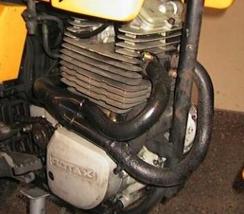 Comme il n'existe pas d'échappement adaptable pour cette machine nous allons donc installer un échappement d'Aprillia Pegaso équipée elle aussi du mono-cylindre Rotax. L'avantage c'est qu'il est plus libre car destiné à un 600 cc tout en restant homologué par rapport aux normes de bruit.