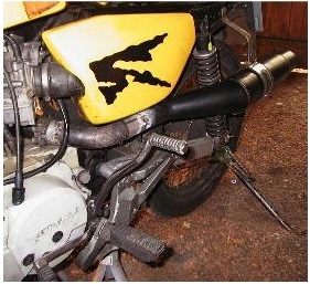 Après peinture haute température, le tout est fixé par boulonnage sur le cadre de la machine, le pot passe désormais à l'extérieur, plus volumineux car destiné à une 600 CC il offre une sonorité plus grave et permet au moteur de mieux respirer, avec un boîtier de filtre à air plus ouvert et un gicleur plus gros de 10 points le moteur devient plus plein à bas régime et semble avoir gagné quelques CV